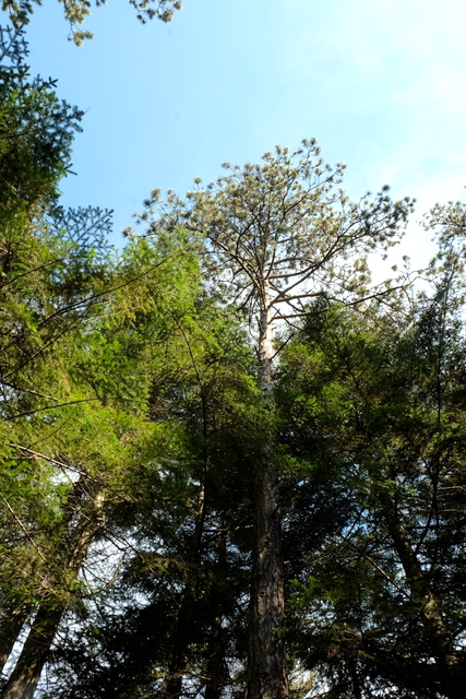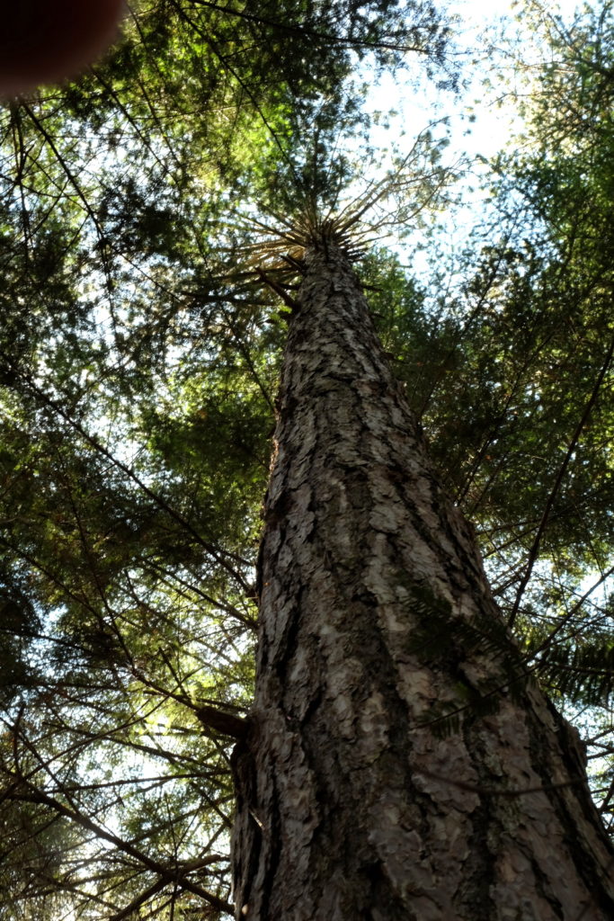 Schodząc w dół mijam kilkadziesiąt wysokich, okazałych modrzewi europejskich (Larix decidua). Po chwili docieram do przystanku czwartego gdzie znajduje się stanowisko sosny czarnej. Sosna czarna (Pinus nigra) to długowieczne drzewo osiągające nawet 50 m wysokości. Kora sosny czarnej ma ciemnobrązową barwę w zagłębieniach i szarobrązową na wierzchu. Jest bruzdowata i podzielona na płytki o prawie czworokątnym kształcie. Igły wyrastają w pęczkach po 2, są spłaszczone, sztywne, ciemnozielone i spiczaste, długie od 4 do 18 cm. Nie zachowało tutaj się dużo tych drzew – jest ich zaledwie kilkanaście ale robią wrażenie swoją prostolinijną smukłością. W dalszej części ścieżka wciąż sprowadza w dół aby w końcu dotrzeć do miejsca skąd słychać szum spadającej wody. Samego wodospadu z tego miejsca jeszcze nie widać więc aby go zobaczyć trzeba zejść niżej.