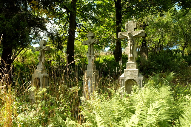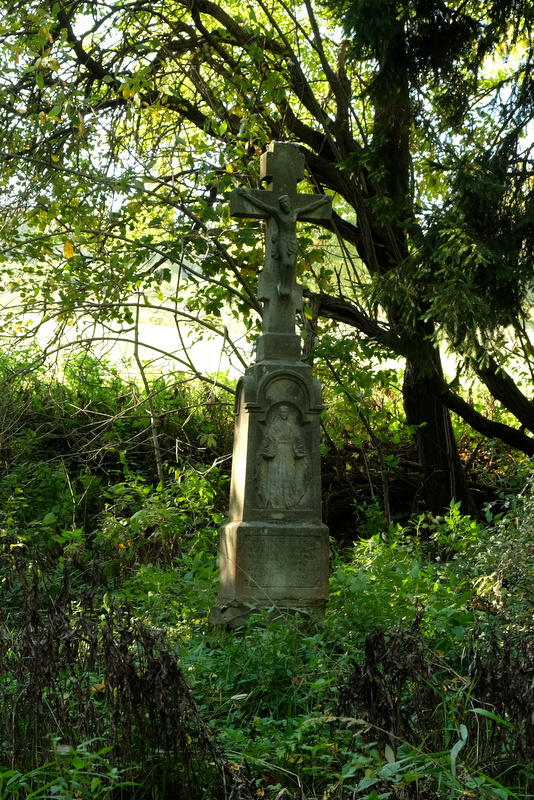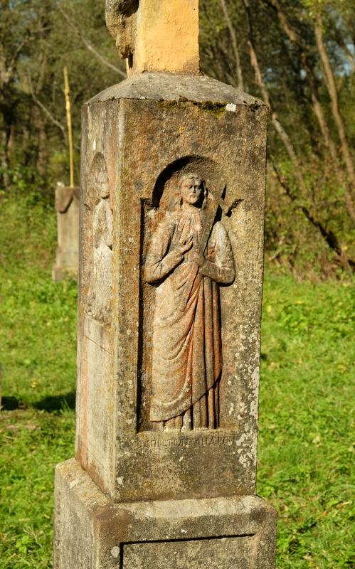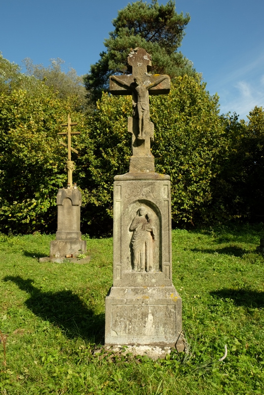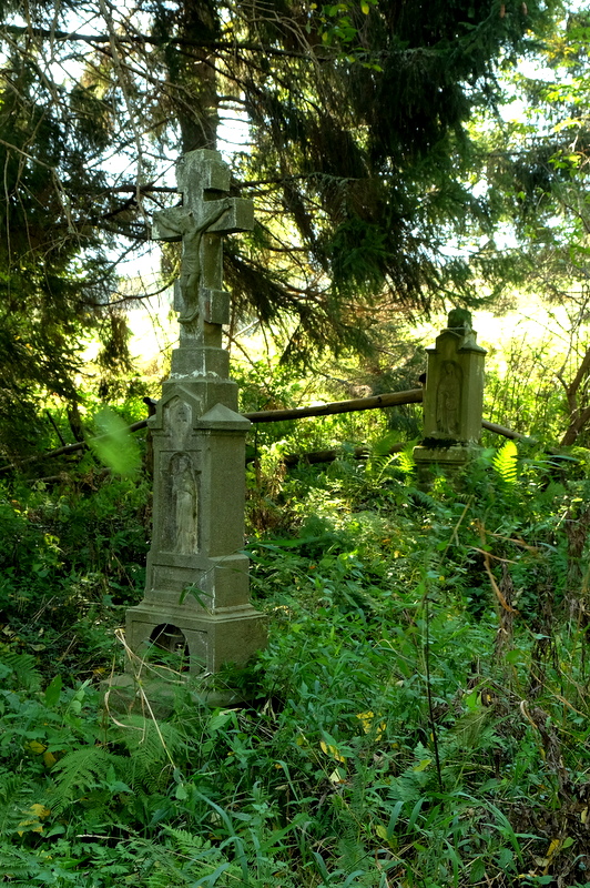 Naprzeciw odgałęziającej się za cerkwiskiem drogi wśród zarośli i pokrzyw stoi odnowiony niedawno krzyż z 1924 roku.