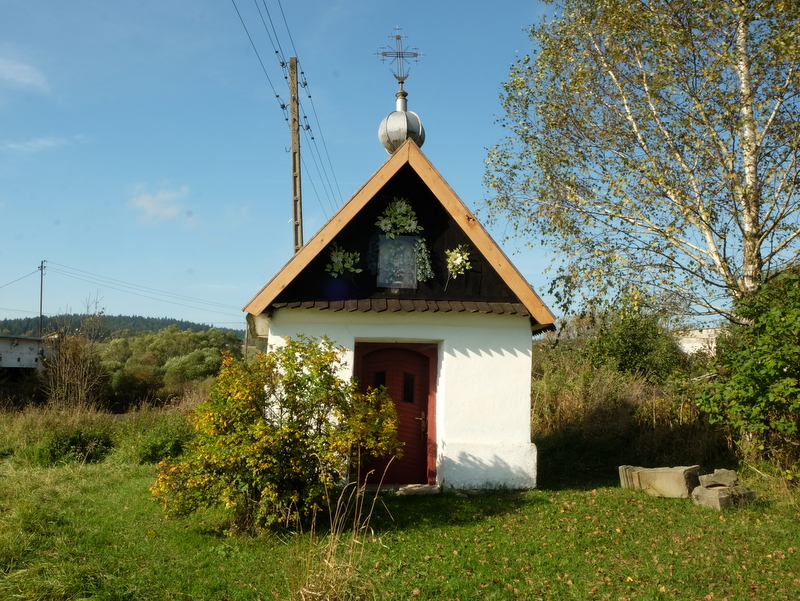Wracamy więc do zaparkowanego na skraju wsi samochodu. Tam też kończymy tą bardzo ciekawą i ekscytującą w mnóstwo wrażeń wycieczkę. Na koniec zatrzymujemy samochód na chwilkę przy krańcu wsi aby podejść i uwiecznić jeszcze jedną kapliczkę stojącą w pewnej odległości od drogi.