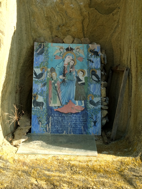 Zachowało się tu dość dużo przydrożnych krzyży i poniszczonych, niekompletnych kapliczek. Warto je więc dokumentować na zdjęciach. W jednej z kamiennych kapliczek, w pustej wnęce artystka z Jasła – pani Marta Jamróg prowadząca „Jasielską Pracownię Ikon” umieściła jedną ze swoich prac. Tematem jej jest przesłanie do myśliwych i kłusowników, których wzywa do zaprzestania zabijania zwierząt dla własnej przyjemności i próżności oraz dbania o przyrodę i środowisko.