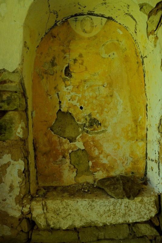 Dawniej to tu było centrum tętniącej życiem wsi. W niewielkiej odległości od budynku dawnej szkoły ale po drugiej stronie drogi znajduje się miejsce po dawnej plebanii. Za plebanią stała cerkiew greckokatolicka pw. śś. Kosmy i Damiana. Otoczona była rosnącymi tu wciąż jeszcze do dzisiaj wysokimi drzewami. Nawet jeszcze obecnie, po wejściu na teren cerkwiska możemy zobaczyć kilka zachowanych kolorowych płytek z posadzki a wśród nich niewielki, zardzewiały żeliwny krzyż.