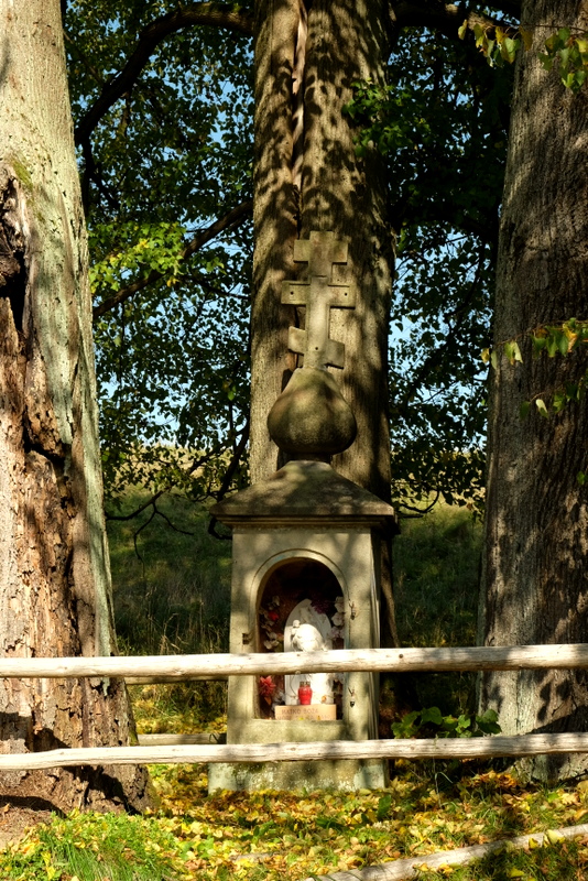 Idąc przez wieś mijamy kilka starych , ponad stuletnich krzyży przydrożnych.