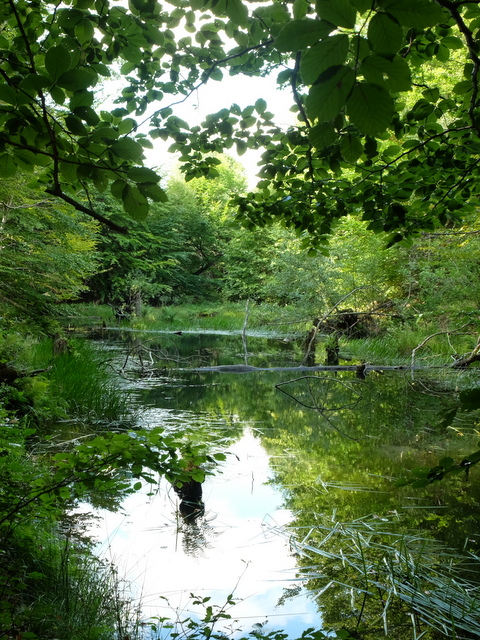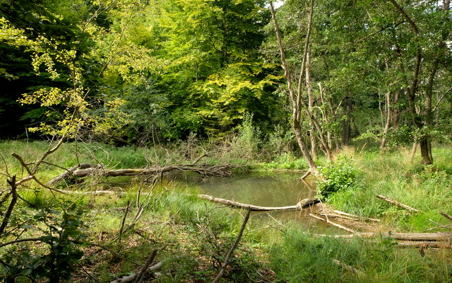 Około 300-400 metrów dalej ale już po lewej stronie drogi na Wisłoce zadomowiły się bobry tworząc w ten sposób dość duże rozlewiska. Ciągną się one na przestrzeni kilkuset metrów. Idąc dalej podziwiamy krajobrazy zwracając uwagę na nieliczne ślady bytowania tu ludzi.