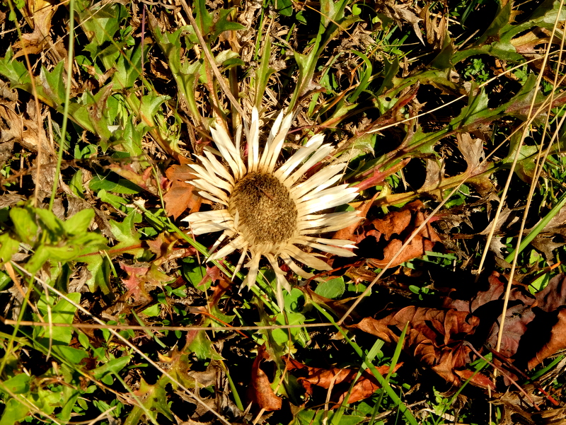 Natknęliśmy się też na kwitnące dziewięćsiły bezłodygowe. Rosną tu one ze względu na to, że znajduje się tutaj obszar wypasowy.