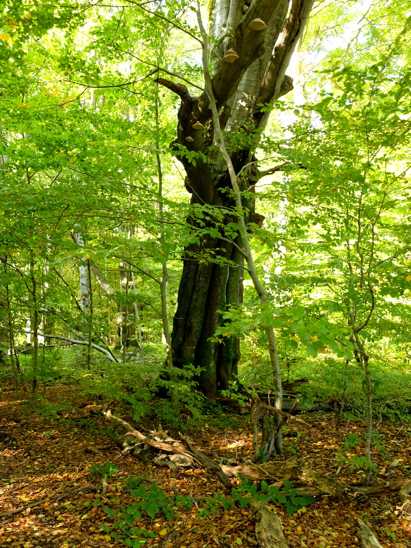 Z przełęczy kierujemy się na zachód i podchodzimy na Panský Vrch, który też jest zarośnięty. Stąd kierujemy się na północ i przedzierając się przez leśne ostępy wychodzimy w końcu na otwartą przestrzeń. Tutaj docieramy do starego ale jeszcze dość dobrze zachowanego deszczochronu, który znajduje się przy zielonym szlaku LP.